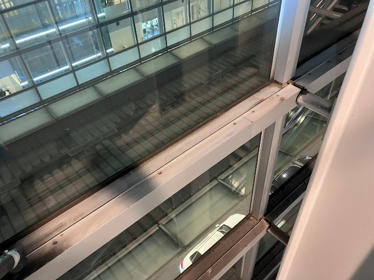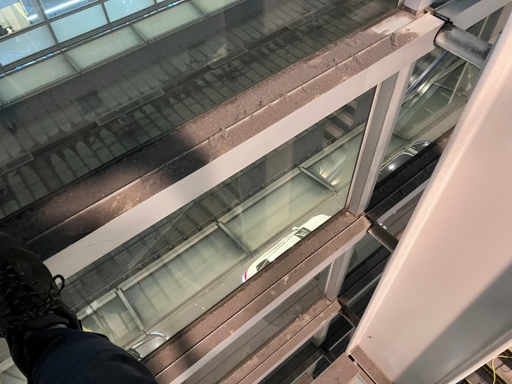 駅は不特定多数が行き来するため衣服の埃等が舞い、外部からの砂埃、粉塵も吹込みどんどん堆積していきます。その割に清掃頻度が少なく、そもそも清掃するのが難しい意匠であるため、非常に汚れている様子が多く見受けられます。